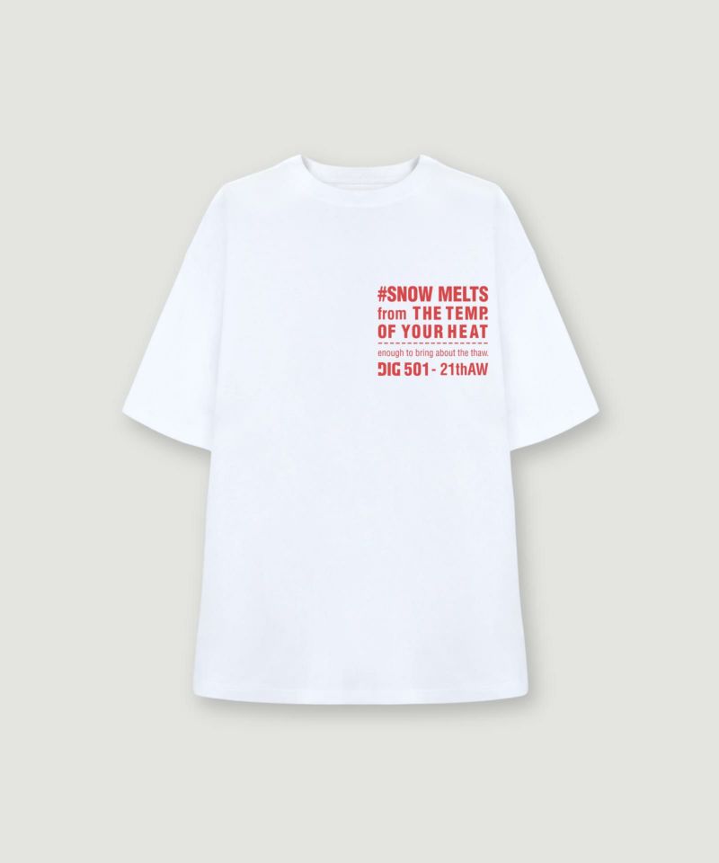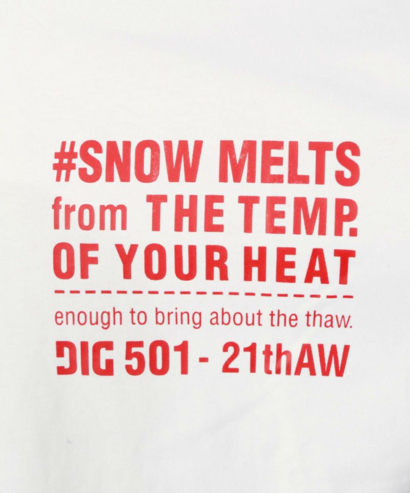 モノトーンの潔さとスローガンプリントを融合させた「THERMAL BORDER PRINTED T-SHIRT」。シンプルながらもフロントにあしらわれたレッドのテキストがアクセントとなり、コーディネートに存在感をプラスします。