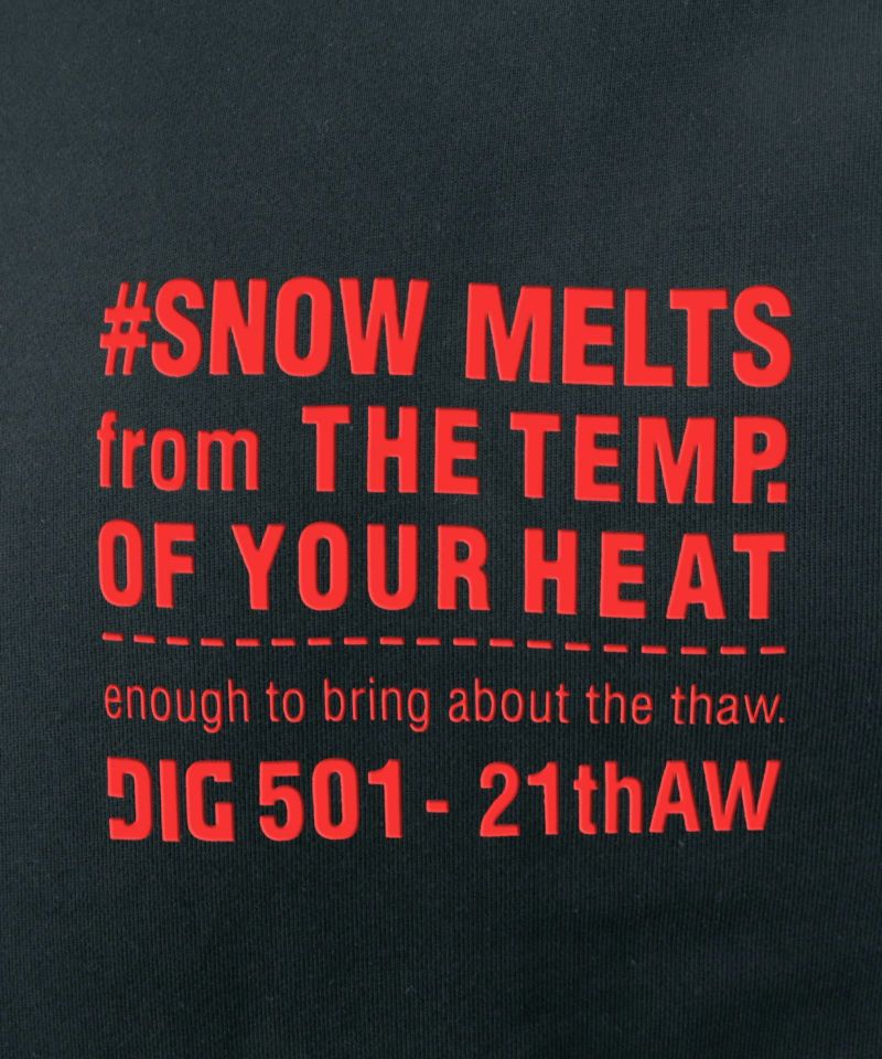 大胆なプリントが魅力の「THERMAL BORDER PRINTED HOODIE」。胸元に施されたレッドのテキストがデザインのアクセントとなり、シンプルながらも存在感のある仕上がりに。