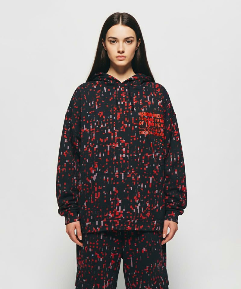 THERMAL BORDER PRINTED HOODIE{CT-03}【[03]NOISE_RED】