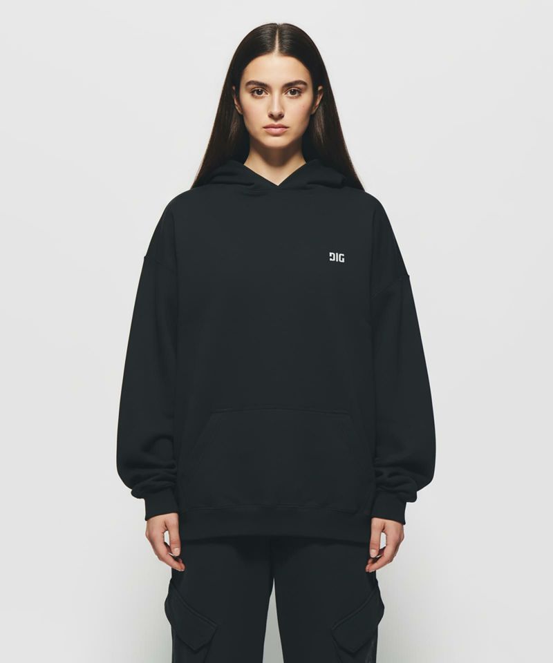 無駄を削ぎ落としたミニマルなデザインが魅力の「DIG SIGNATURE EMBROIDERED LOGO HOODIE」。胸元に施された刺繍ロゴがさりげなく個性を主張し、シンプルながらも洗練された印象を与えます。