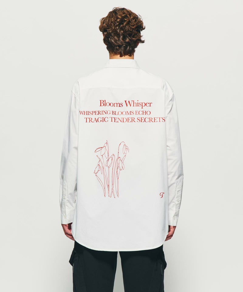 洗練されたシルエットに遊び心を落とし込んだ「SECRET EMBER BACK PRINT SHIRT」。フロントはシンプルに仕上げつつ、バックには大胆なプリントを施し、振り返った瞬間に個性を放つデザインが特徴です。