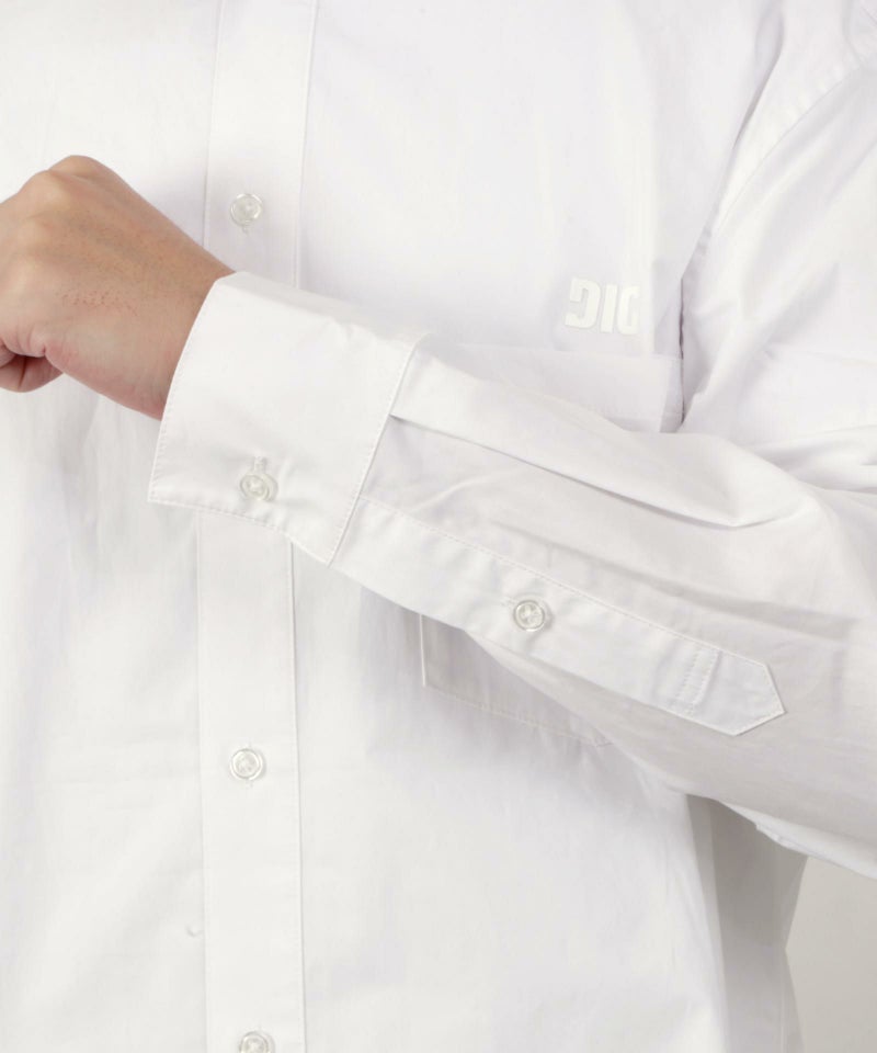 しっかりとしたコットン生地が清潔感と快適な着心地を実現し、カジュアルからモードなスタイルまで幅広く対応。ベーシックなシャツにメッセージ性のあるデザインを融合させることで、日常のコーディネートに変化と高揚感をもたらします。