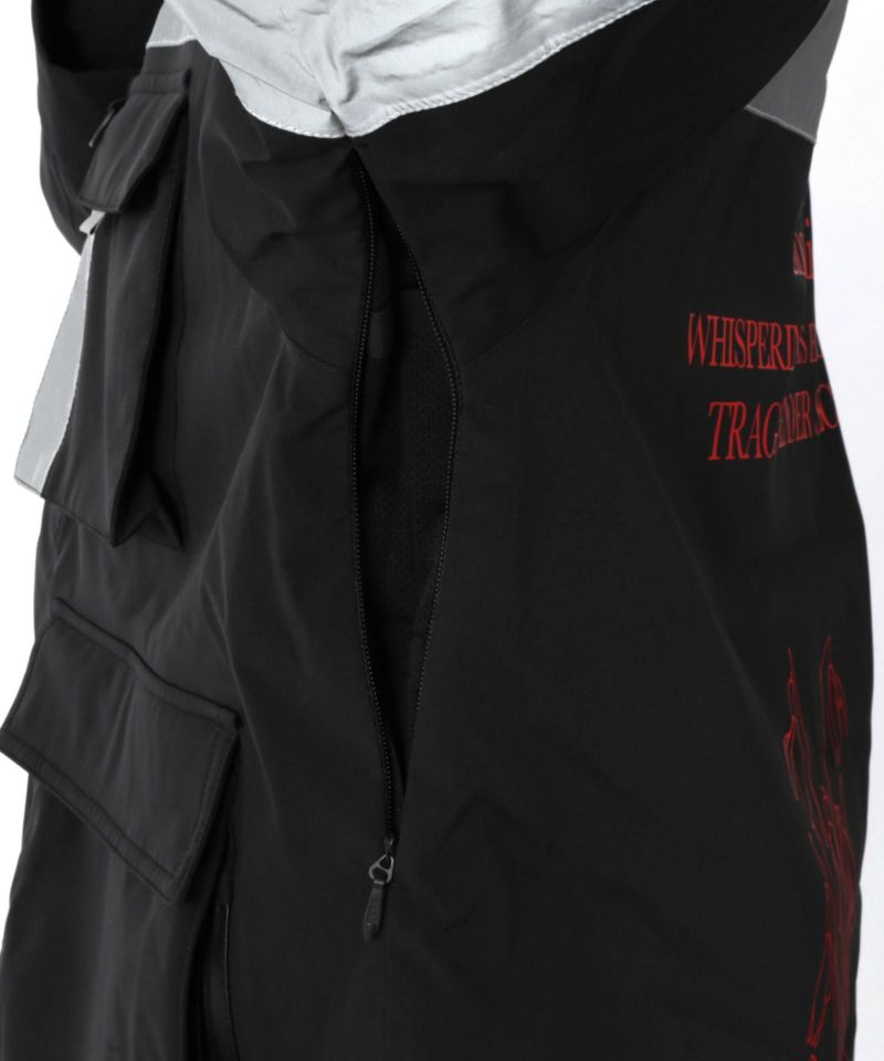 消防士のユニフォームを着想源にした力強いシルエットとリフレクティブなラインは、厳しい環境に挑む人々の姿を映し出し、着る人に頼もしさと高揚感を与えます。黒・赤・青の3色展開はそれぞれ異なる個性を放ち、都市のシーンから雪山まで自在に対応。背面にはメッセージ性のあるプリントを施し、自然と人との関わり、そして未来への視点を投げかけます。