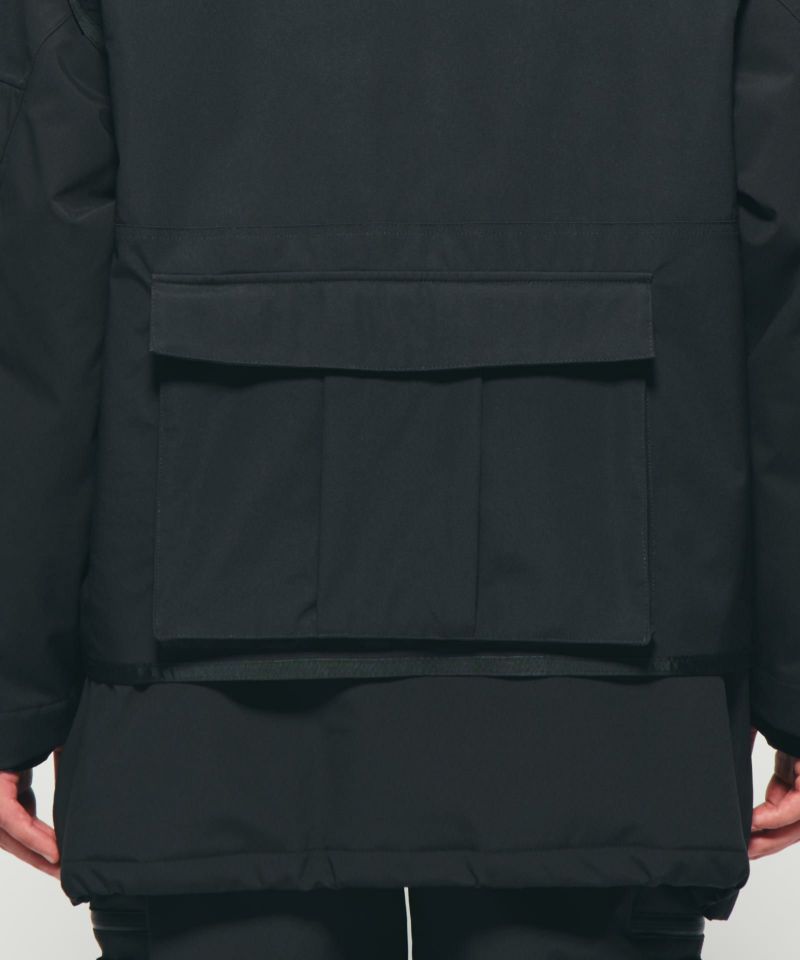 収納力のあるポケットを備え、アウトドアでの実用性を確保しながら、街中でもモードな印象を演出します。オーバーサイズのシルエットは重ね着もしやすく、幅広いスタイリングに対応。