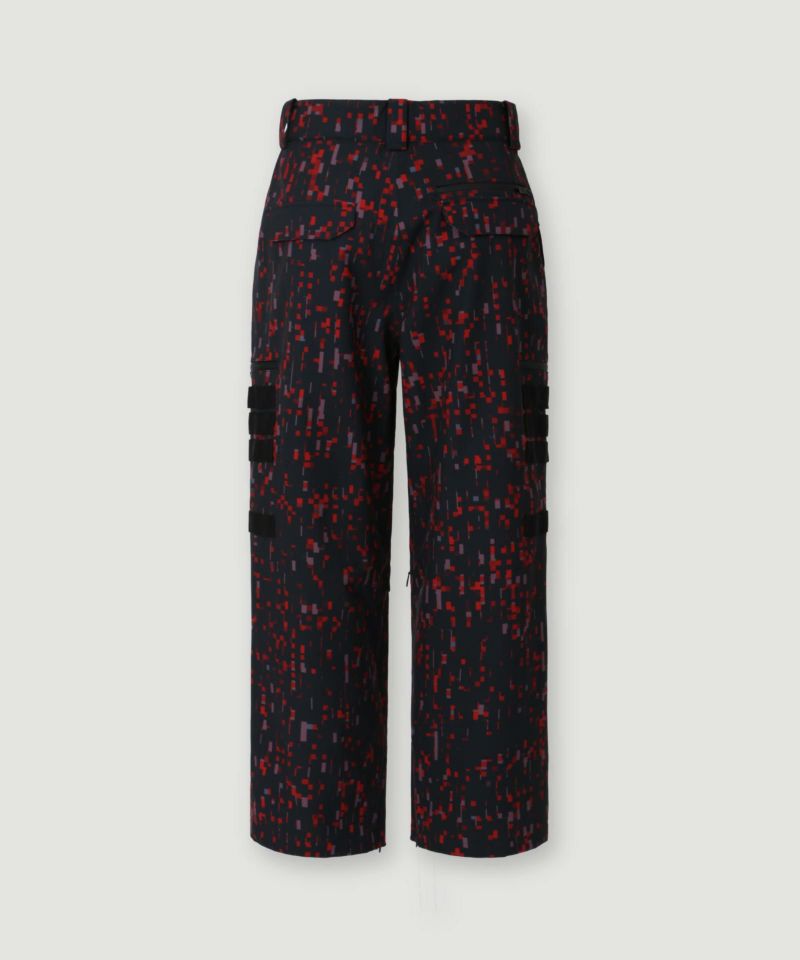 「ADAPTIVE FRAGMENT PANTS」は、雪の結晶が描き出す独特な構造美を再解釈し、機能性とデザイン性を融合させたアイテムです。ADAPTIVE FRAGMENT JACKETと同様に、黒・白・ノイズレッドの3色を展開。